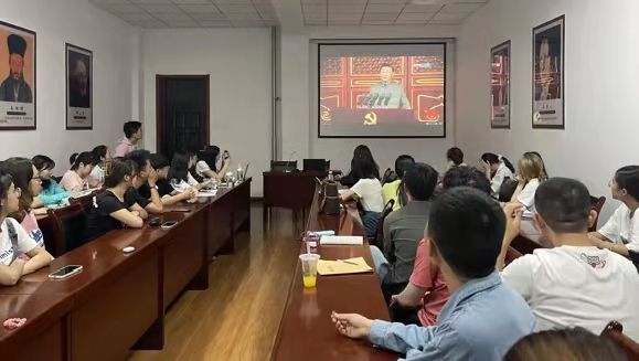 十八禁动漫 组织全体在校研究生在雁塔校区文化与价值哲学研究院会议室收看大会盛况,第一时间认真学习领会习近平总书记重要讲话精神,感悟中国共产党百年风雨征程,深刻感受100年来中国人民在中国共产党的领导下,自力更生、艰苦创业、书写了人类发展的伟大传奇!