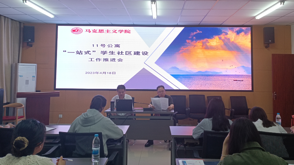会上,刘驰书记介绍了11号公寓站务委员会的人员设置,对工作进行统筹指导。他指出,“一站式”学生社区建设是为了将学校和学院的领导力量、管理力量、思政力量、服务力量压到学生中间,让党团建设下沉一线。
