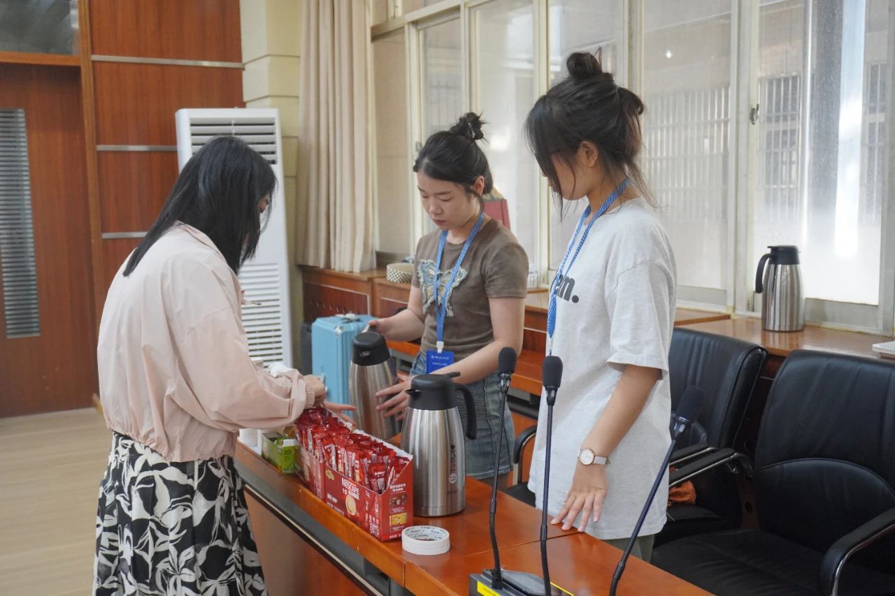 11日下午,志愿者们提前进入会场,开展各项筹备工作。他们全面检查和整理会议手册、笔记本、签字笔等物资,摆放座位标签,力求细致周到,为会议顺利举办做好充分准备。
