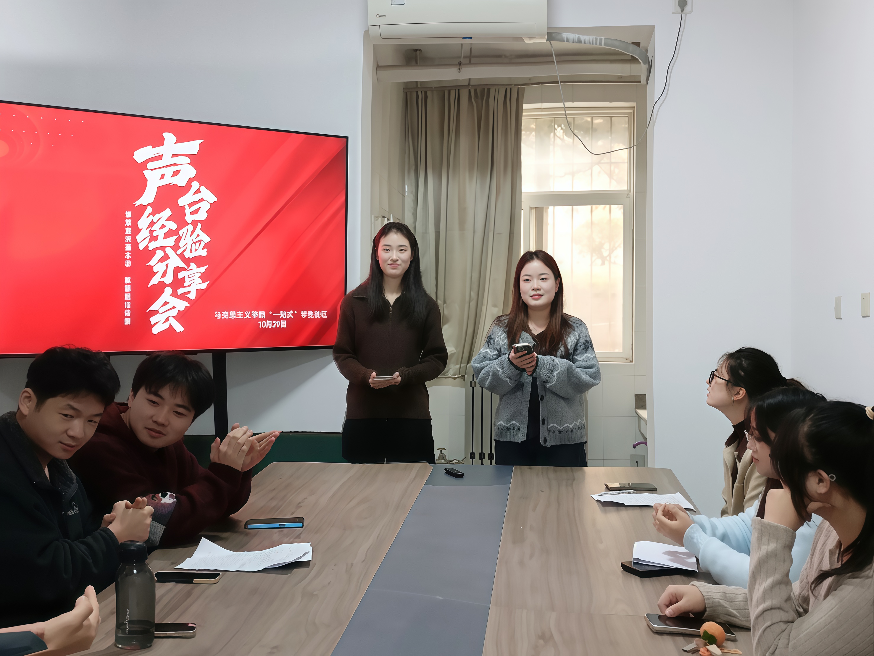 于11号公寓“一站式”学生社区开展声台经验分享会。本次活动由2025级研究生王思蓉、席瑞雪主持,部分2024级和2025级研究生参加。