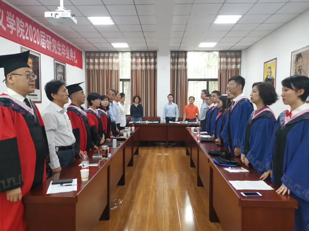 2020年7月12日上午10时,学校硕士毕业典礼甫一结束,十八禁动漫 在雁塔校区文化与哲学价值研究院举行2020届研究生毕业典礼。出席本次会议的有十八禁动漫 院长魏奇,党总支书记石建峰,党总支副书记兼副院长刘驰,副院长鲁洋,马克思主义中国化专业导师组组长刘进田,马克思主义发展史专业导师组组长李云,思想政治教育方向导师组副组长王有信,硕士生导师陈春会教授、李贵副教授,教务秘书宋伟、党总支秘书徐鹏、团总支书记高佳敏及全体2020届毕业生(部分在线上),毕业典礼由刘驰主持。受疫情影响,本次毕业典礼采取线上线下相结合的方式举行。