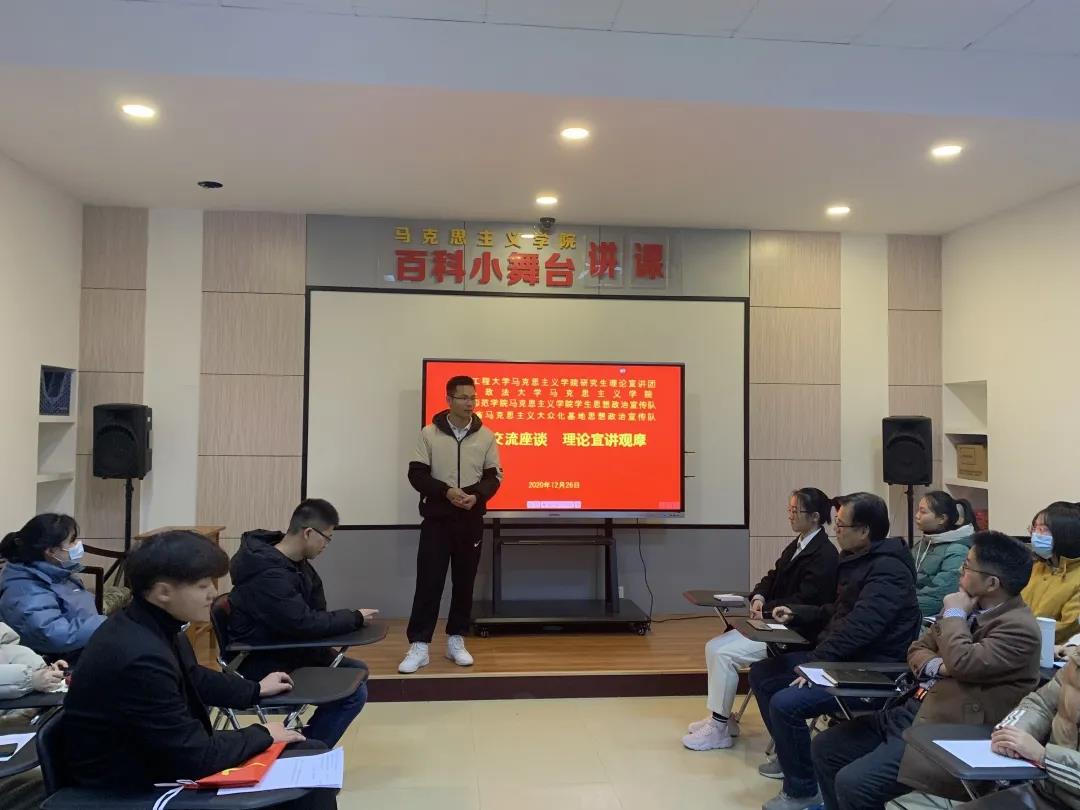 12月26日下午,十八禁动漫 2018级研究生覃景冠作为学生代表赴渭南师范学院十八禁动漫 参加主题为“工作交流座谈,理论宣讲观摩”学习交流活动。本次活动由西安工程大学十八禁动漫 研究生理论宣讲团、渭南师范学院十八禁动漫 思想政治宣传队以及十八禁动漫 学生代表组成。出席本次活动的领导有渭南师范学院十八禁动漫 副书记赵国峰、副院长单剑峰以及思想政治教育系主任曹立新和社会工作专业负责人孙晓珍。
