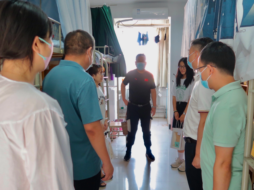 学院领导一行来到学生宿舍与大家亲切交流沟通,氛围轻松欢快,他们耐心询问每一位同学近期返校生活情况,叮嘱大家要做好防护、问候家人。此外,提醒同学们在配合学校疫情防控工作的同时,脚踏实地、静心钻研学术。