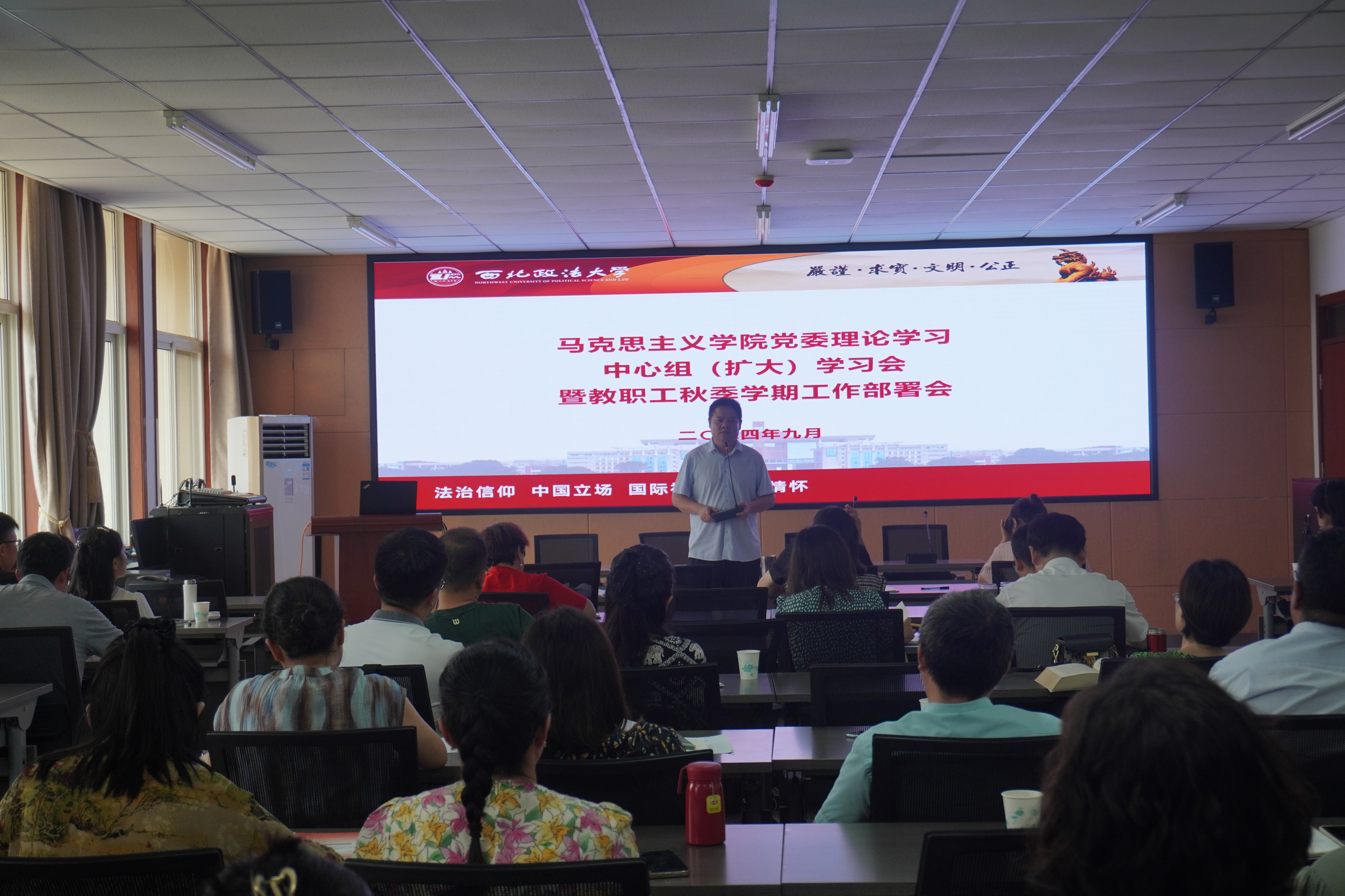 8月25日下午,十八禁动漫 在会议室召开党委理论学习中心组(扩大)学习会暨教职工秋季学期工作部署会,研讨学习党的二十届三中全会精神和全省学校思政课建设座谈会精神,总结上半年工作完成情况,全面部署新学期重点工作。学院全体教职工参加本次会议,会议由学院院长魏奇主持。