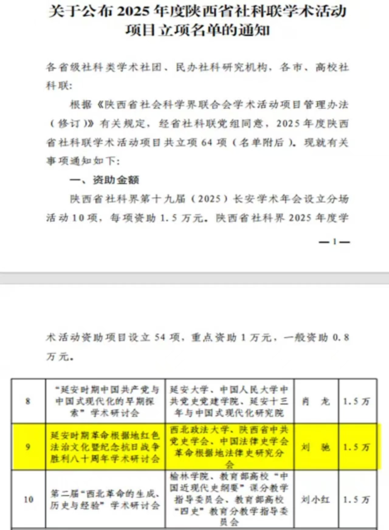 部分教师参与的《延安时期革命根据地红色法治文化暨纪念抗日战争胜利八十周年学术研讨会》被列入陕西省社科界第十九届(2025)长安学术年会分场,获得省社科联重点资助。