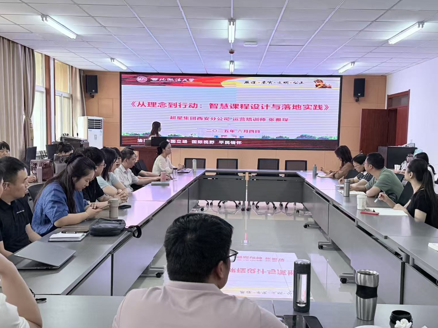 在诚意楼五楼会议室召开“从理念到行动:智慧课程设计与落地实践”专题培训会。本次培训特邀超星集团西安分公司运营培训师张雅琛担任主讲,学院全体教师参加培训,会议由副院长鲁洋主持。