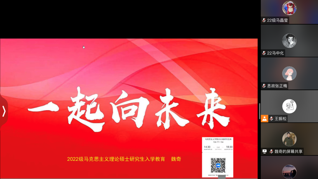 院长魏奇教授以“一起向未来”为题,为2022级研究生线上讲授开学第一课。学院学生党支部书记徐鹏、辅导员刘栩源以及2022级全体研究生到场参加。