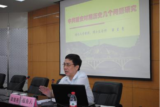2012年6月13日下午,西北大学博士生导师梁星亮教授在雁塔校区研究生综合楼四楼报告厅为我校师生做了题为“中共延安时期历史几个问题研究”的学术报告。我校思想政治教育专业导师组组长段建海教授等两百余名师生参加了报告会。报告会由马克思主义教育研究院院长刘进田教授主持。