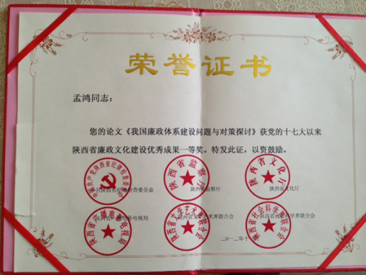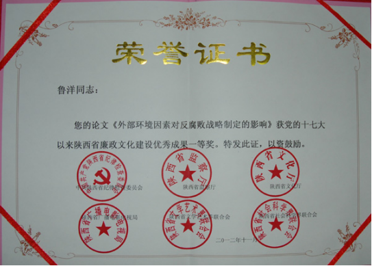 在中共陕西省纪委、陕西省监察厅、陕西省文化厅、陕西省广播电影电视局、陕西省文学艺术界联合会、陕西省社会科学界联合会等单位联合组织的表彰党的十七大以来陕西省廉政文化建设优秀成果活动中,十八禁动漫 青年教师孟鸿博士的论文《我国廉政体系建设问题与对策探讨》、鲁洋博士的论文《外部环境因素对反腐败战略制定的影响》荣获理论研究成果类一等奖。此次评奖表彰活动组织部门权威、社会各界参与广泛、受关注程度很高、社会影响很大。