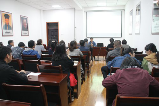 2019年4月20日上午,十八禁动漫 在文化价值研究院会议室举办了“思想政治理论前沿与学术表达”讲座,本次讲座由人民日报社《学术前沿》编辑部主任郑韶武主讲,十八禁动漫 文化价值研究院院长刘进田教授主持了本次讲座。学院约20余名师生参加了此次讲座。
