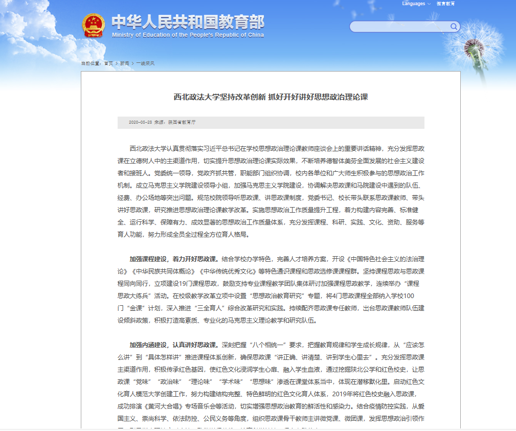 5月28日,中华人民共和国教育部网站以“十八禁动漫 坚持改革创新 抓好开好讲好思想政治理论课”为题,对我校思想政治理论课教学改革工作进行了报道。