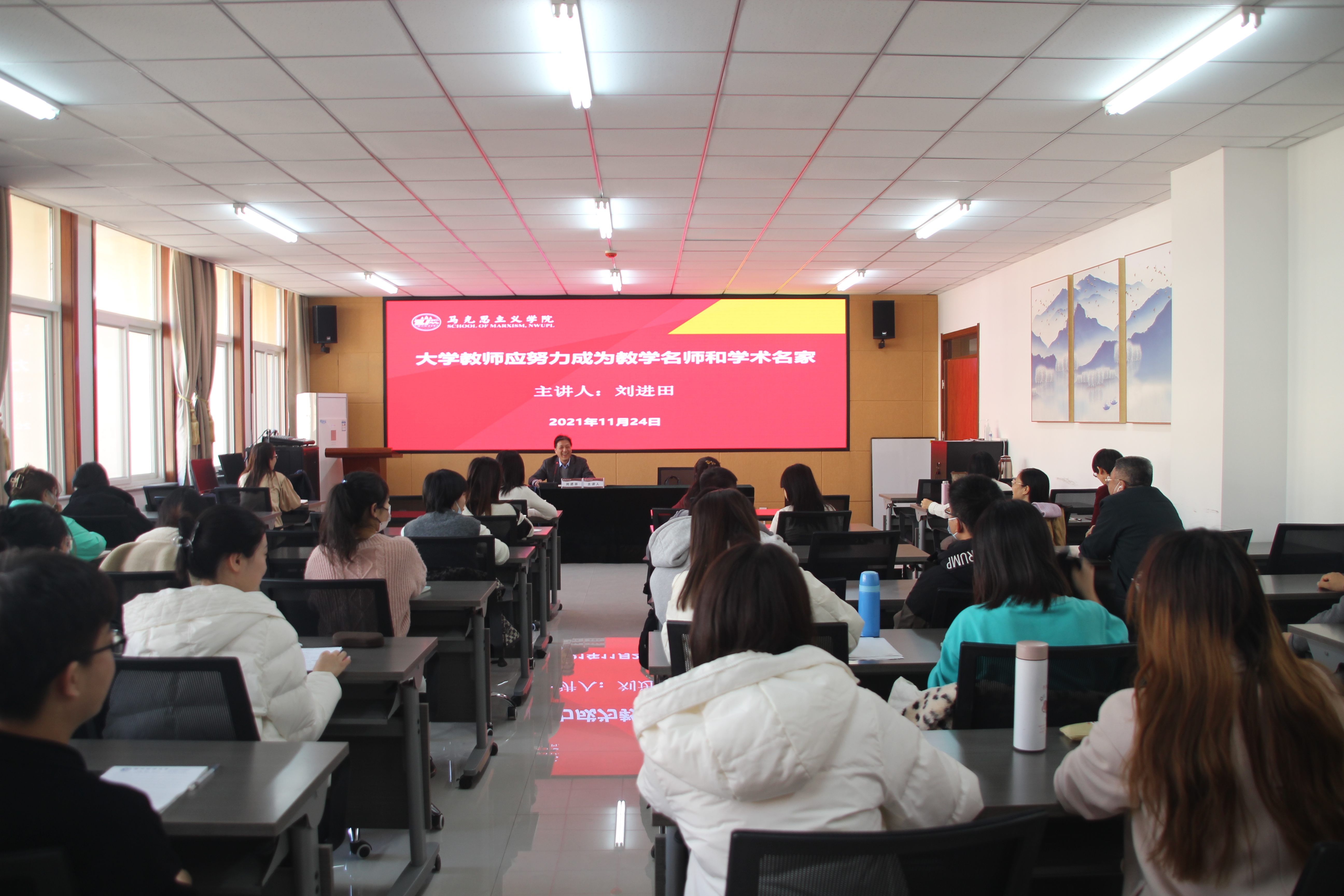 在学院会议室召开新晋研究生导师、转岗教师培训会。由我校学术委员会副主任、二级教授、博士生导师、马克思主义理论一级学科首席专家、文化与价值哲学研究院院长刘进田教授作了题为《大学教师应努力成为教学名师和学术名家》的报告。学院新晋研究生导师、转岗教师以师生代表参加了培训会。会议由学院办公室主任苏芳主持。