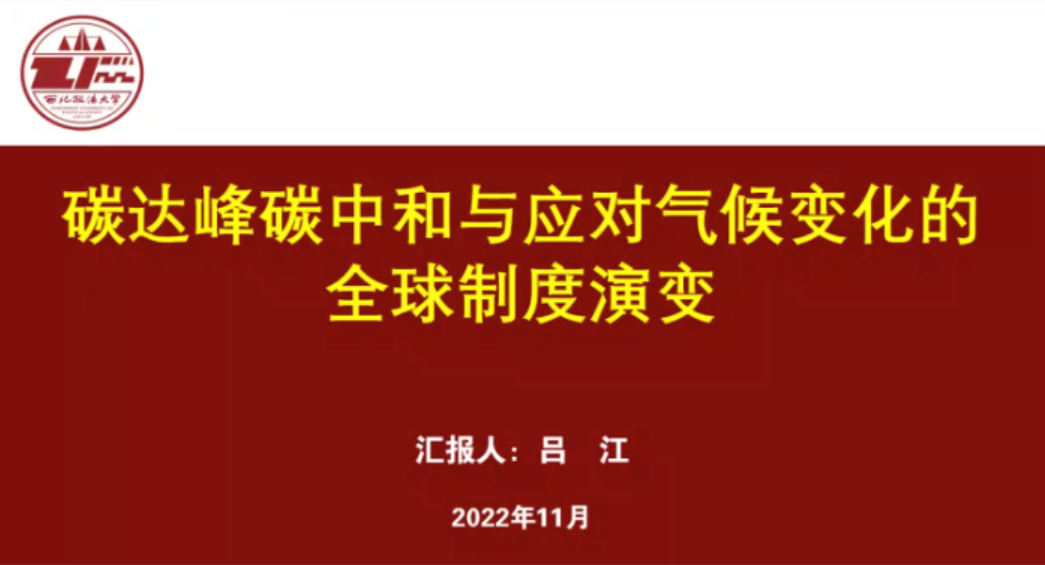 2022年11月2日(星期三)由十八禁动漫 丝绸之路区域合作与发展法律研究院副院长吕江教授主讲的题为《碳达峰碳中和与应对气候变化的全球制度演变》在线上成功举办,十八禁动漫 讲师徐树森参与谈论,报告会由十八禁动漫 副院长何彦新主持。来自全国各地百余名师生云端相聚,参加了本次讲座。本次讲座会由科研处、发展规划与学科建设处主办,十八禁动漫 、马克思主义研究会、陕西学前师范学院、商洛学院、西安开放大学联合承办。
