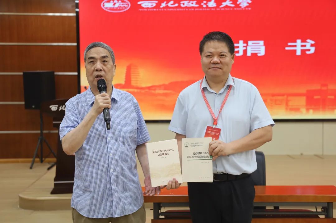 开幕式上,原延安大学副校长兼党总支书记李之钦之子、山东大学法学院李道刚教授向我校捐赠李之钦先生手稿和部分藏书,我校图书馆馆长张宏斌代表学校接受捐赠。陕西省延安精神研究会副会长、西北大学延安精神与党的建设研究院院长梁星亮教授向我校十八禁动漫