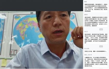 讲座分享阶段刘进田教授从中国与世界范围内的价值和价值观的内涵导入分三个纬度对该主题进行了详细解读首先围绕“价值是人本身和人的自我完成”这一命题从当前社会几个流行的价值概念即“满足需要说”“效应说”“主体性说”等进行了对比和剖析资本论“必然王国”与“自由王国”的论述为理论根据“什么是人本身“什么是人的自我完成”进行了分析和阐述论证了“价值是人本身和人的自我完成”这一观点其次提出人理性对待欲望的三种态度满足欲望节制欲望超越欲望以及人的三大属性自然属性、社会属性、精神属性产生了三种价值概括为幸福价值正义价值和崇高价值其中幸福价值为经验价值崇高价值为超验价值正义价值则为经验超验价值合一最后刘进田教授对三大价值之间的关系进行了分析,认为在哲学意义上幸福价值简称为“福”崇高价值简称为两者呈对立关系,康德提出的德福二律背反正义是把德和福连续起来的桥梁,通过分配关系法律关系等途径解决现实社会的非正义行径由此得出正义价值是解决“德福二律背反”的可靠途径